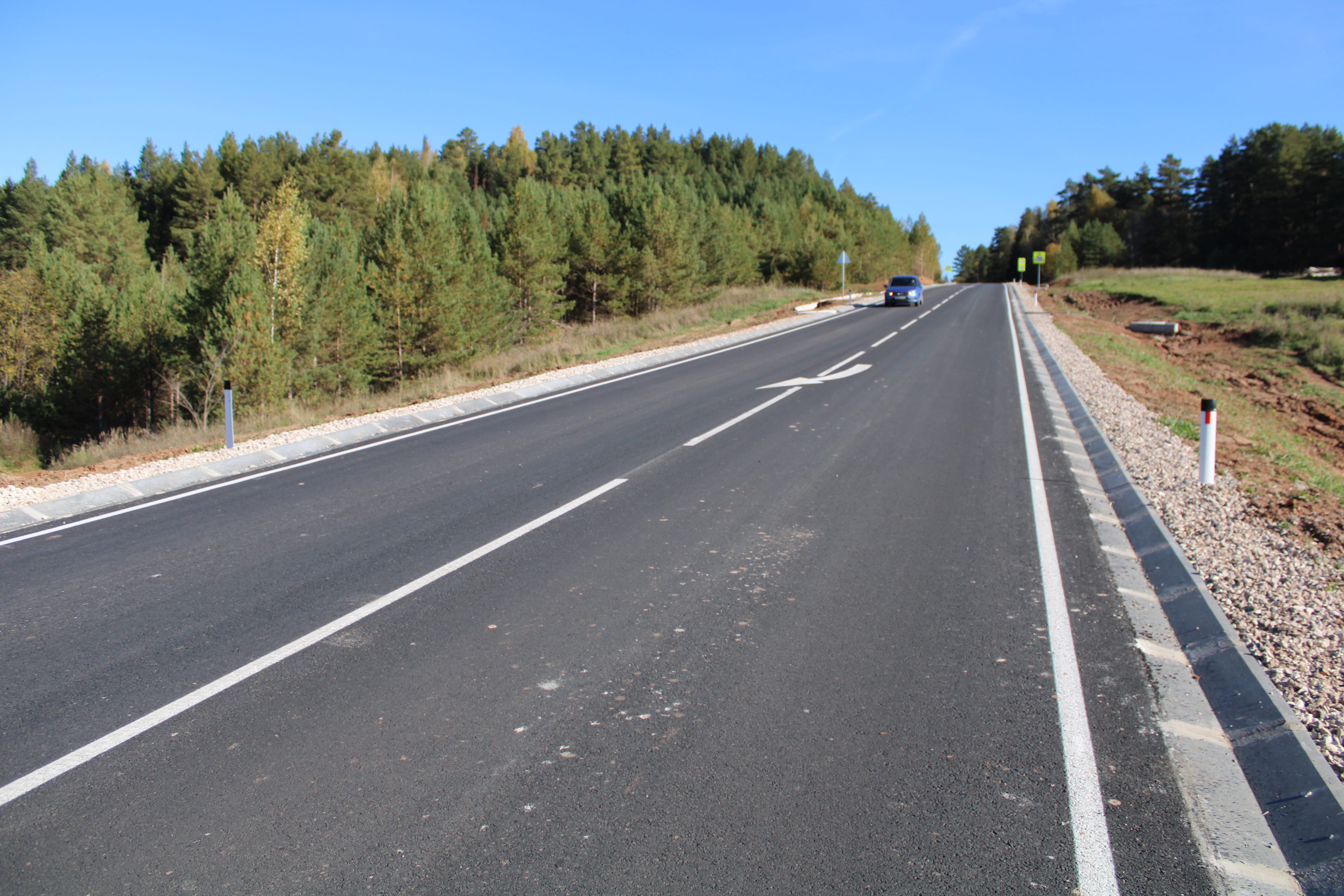 В ходе работ подрядная организация выровняла основание дороги щебнем и укрепила при помощи метода холодной регенерации — это гарантирует долговечность обновленного дорожного полотна. Для обеспечения безопасности пешеходов вдоль дороги построены тротуары протяженностью 1,2 км, отделенные от проезжей части металлическим барьерным ограждением. Трассу и пешеходные дорожки в темное время суток будет освещать современное светодиодное оборудование.